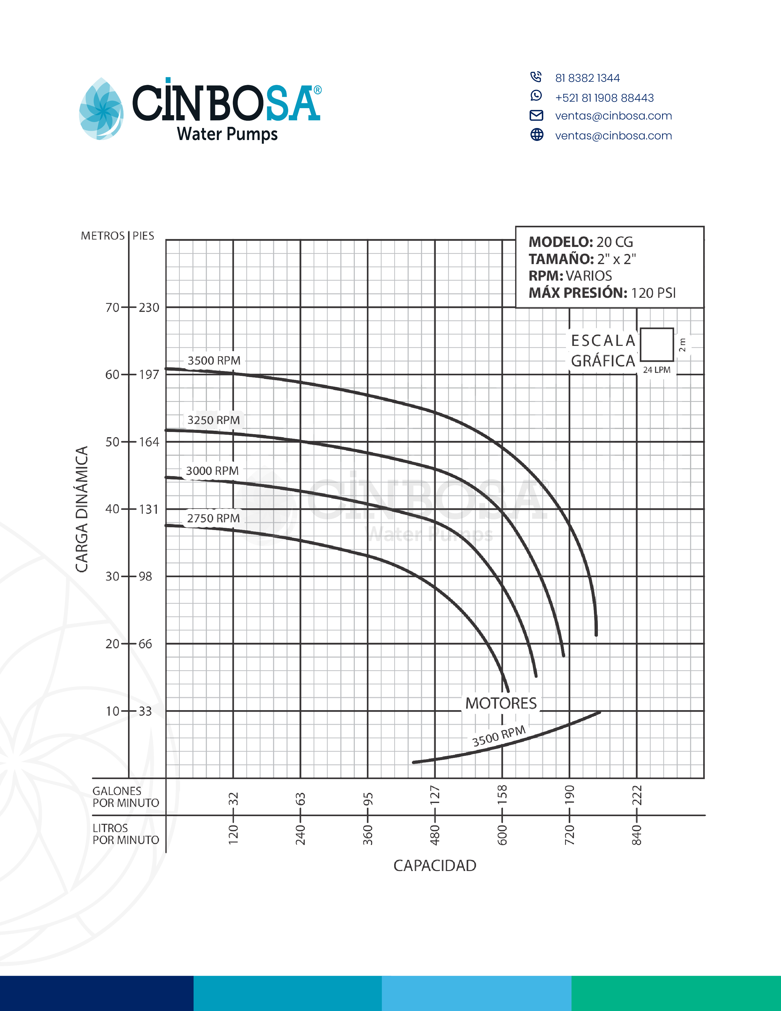 - Descarga: 2″ NPT vertical, con 4 posiciones.