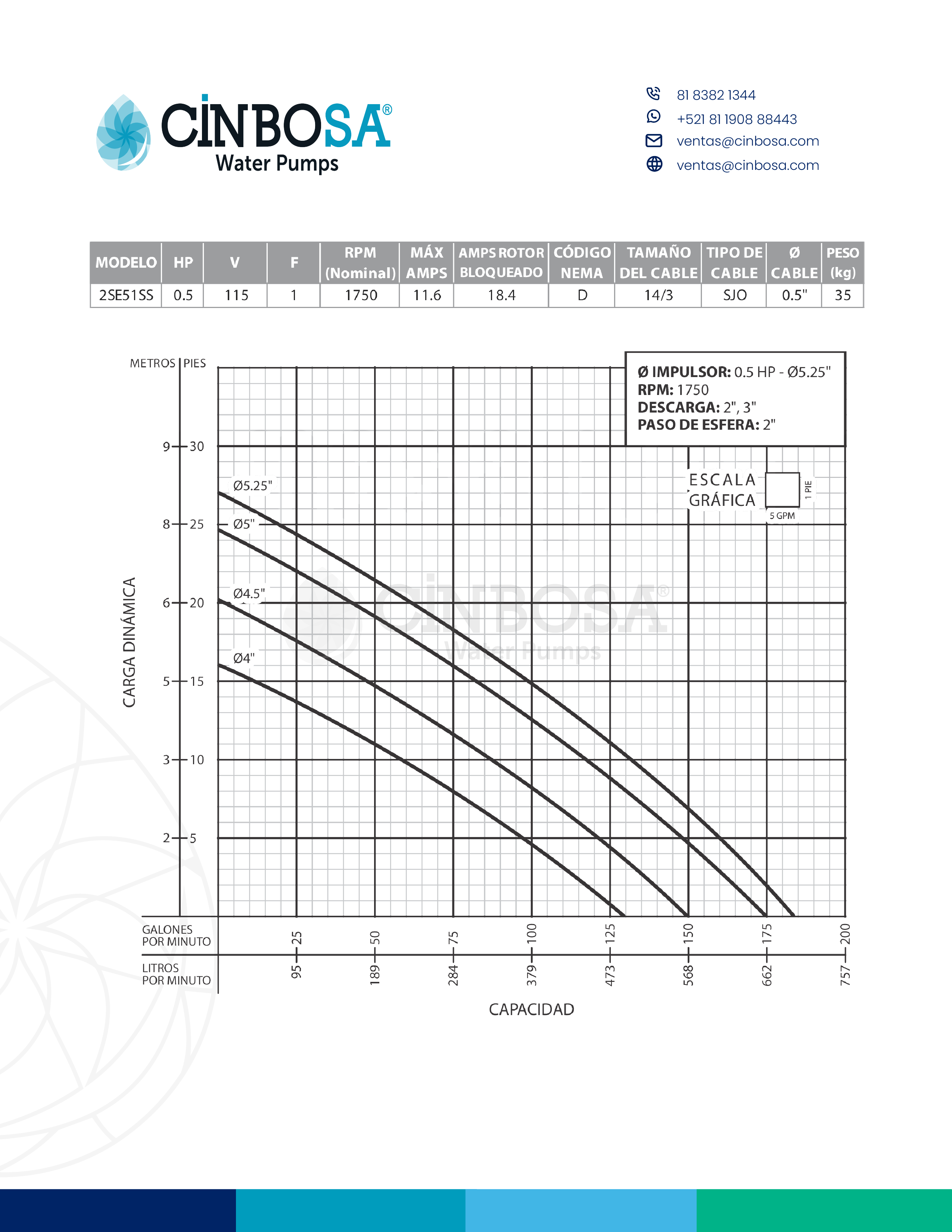 La bomba sumergible Barmesa modelo 2SE51SS, diseñada para lodos y aguas negras, presenta las siguientes características principales: