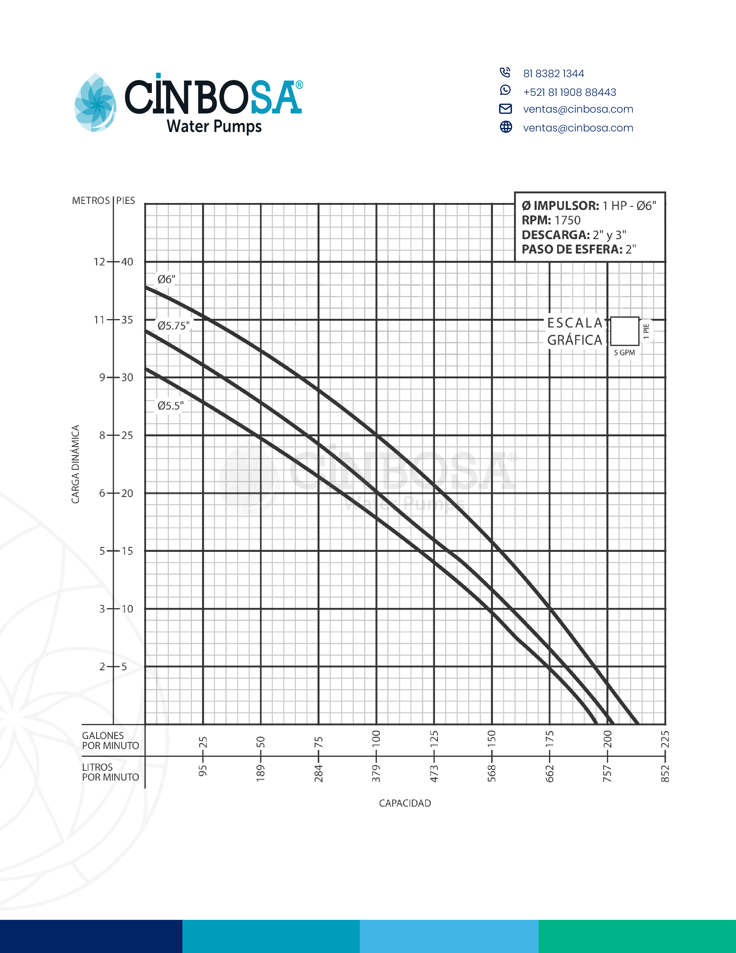 • Descarga: 3 pulgadas (7.62 cm) vertical, con brida NPT hembra.