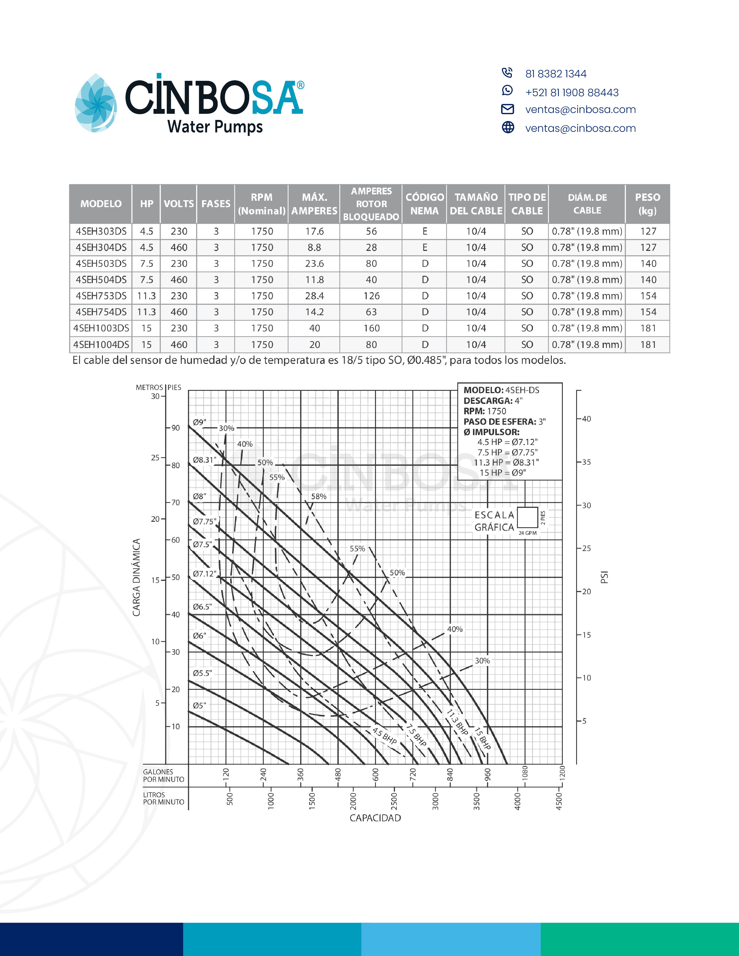 La serie de bombas sumergibles para lodos 4SEH-DS, presenta las siguientes características principales: