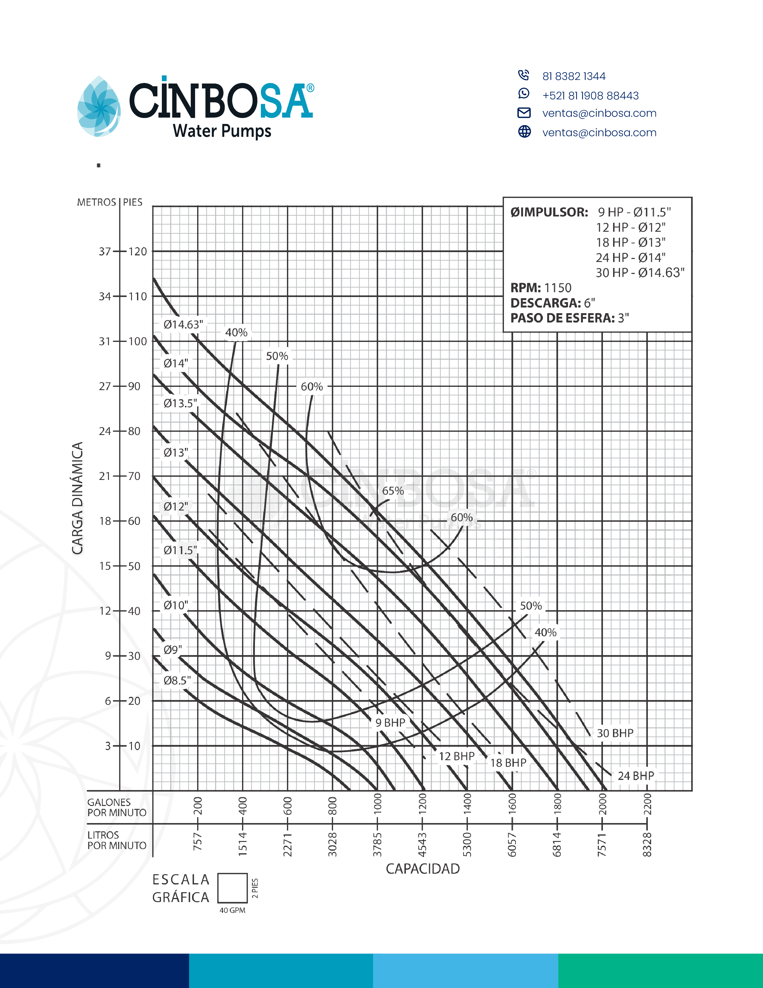 - Paso de sólidos de 3″, lo que permite el manejo de partículas de tamaño considerable.