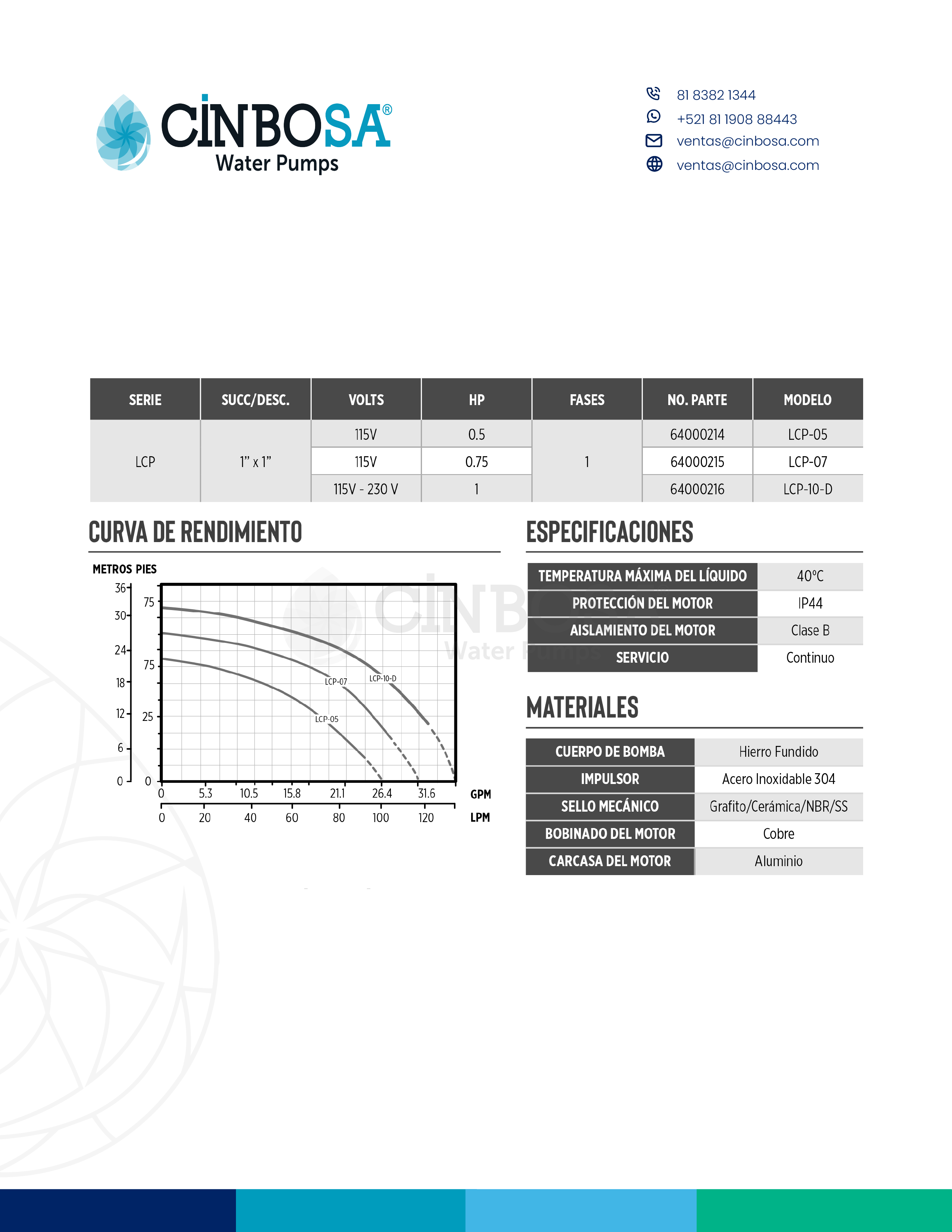 • Cuerpo de bomba de hierro fundido para garantizar alta resistencia