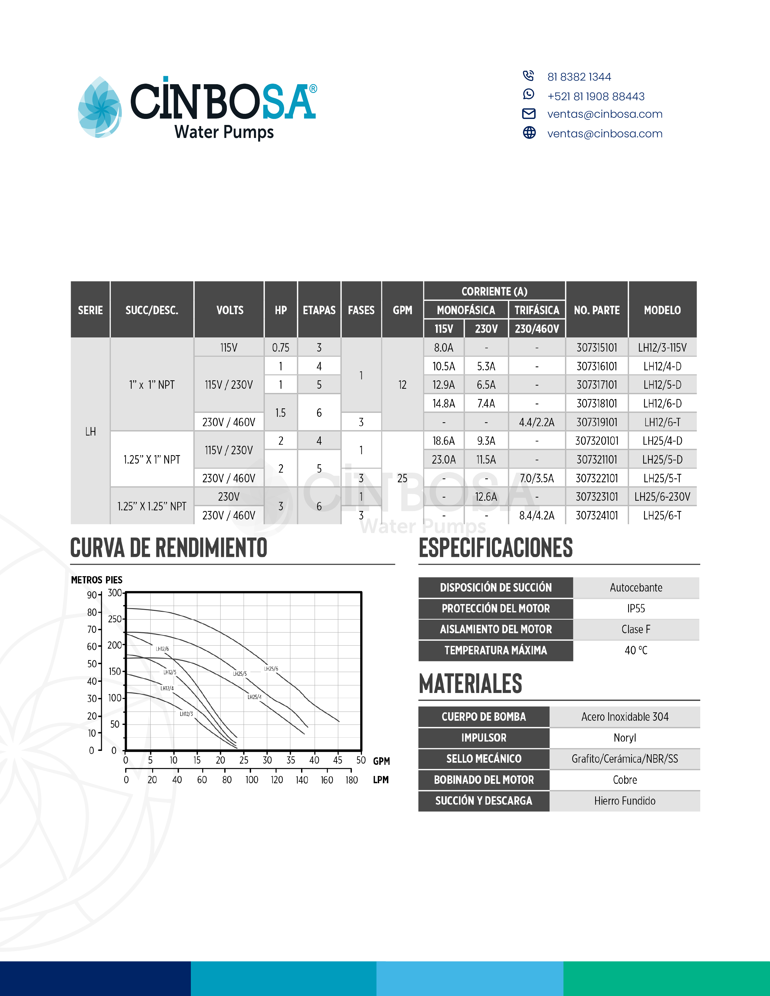 Ideal para instalaciones domésticas y comercial ligero, en sistemas de presión constante o donde la aplicación demande agua a alta presión y alto flujo.