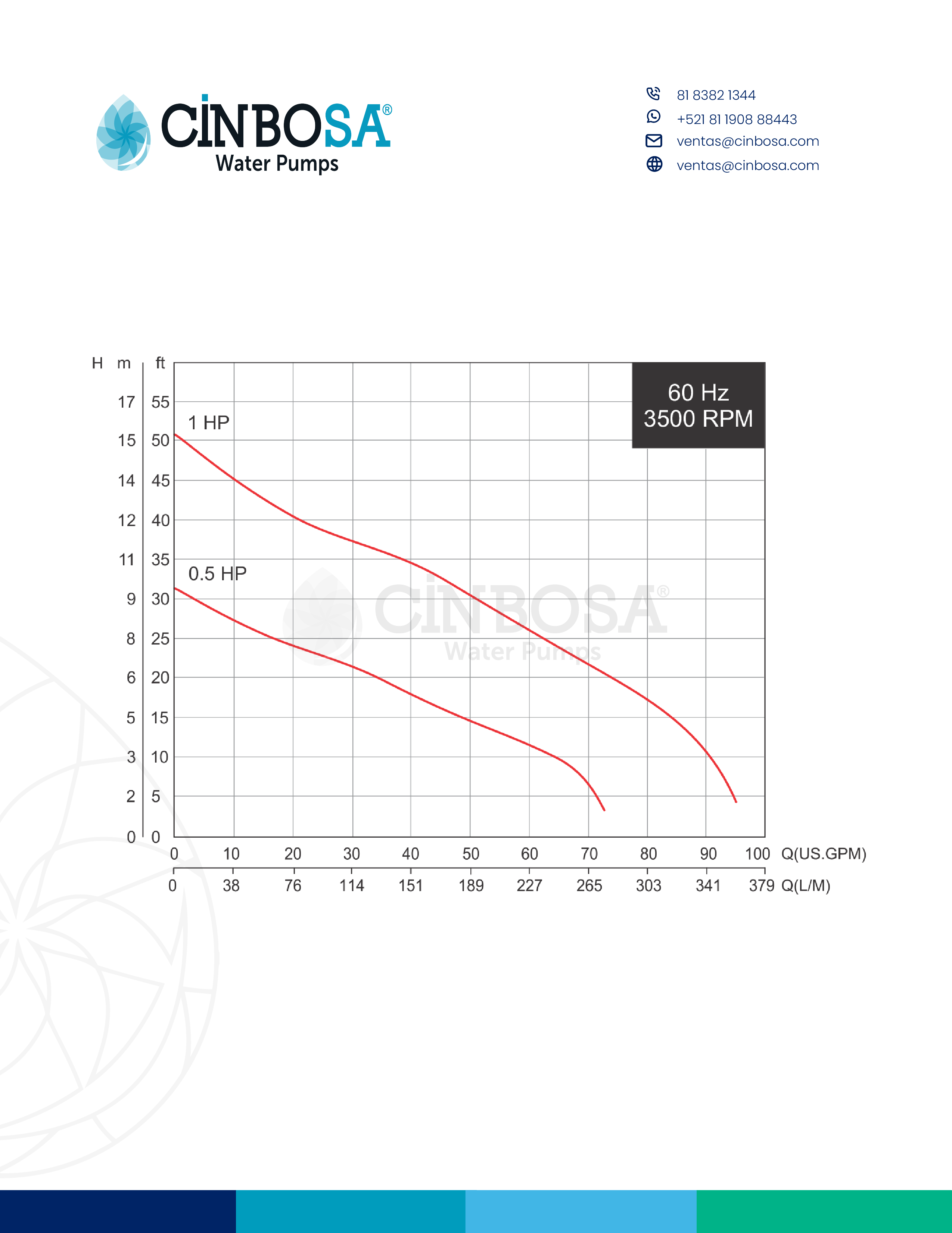 • Motor: En cámara de aire, monofásico (115/230 V) y trifásico (230-460 V), 60 Hz, con protección térmica en el devanado IP68 y aislamiento clase B para trabajo continuo.