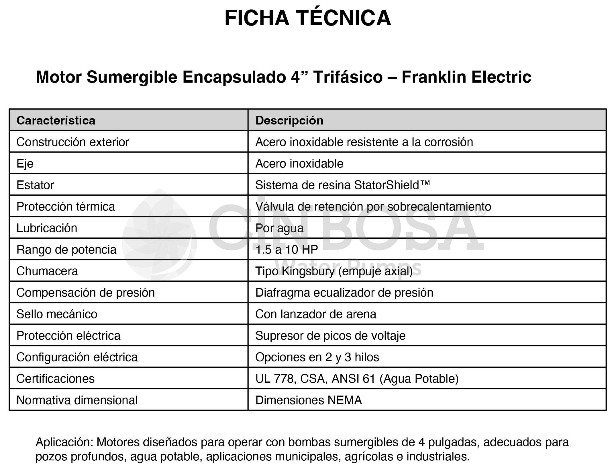 Motores Sumergibles Encapsulados de 4” – Trifásicos